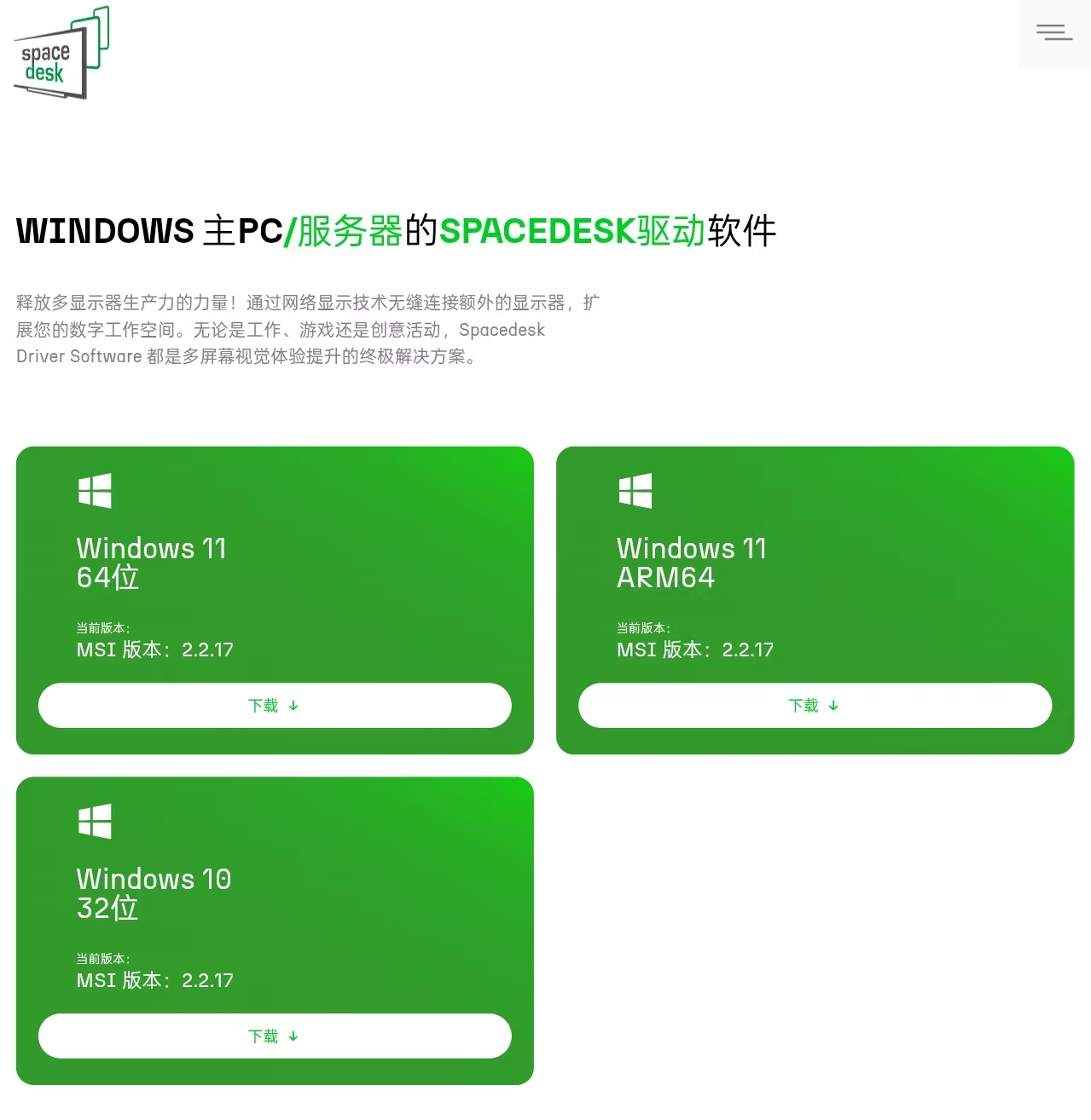 如果你打不开这个网站,我也把相关的软件放在了我的网盘 spacedesk | 昊天兽王的网盘 你可以在我的网盘下载。