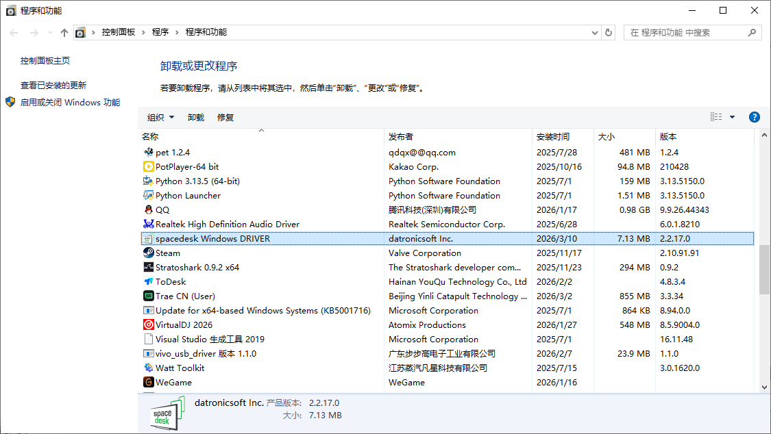 spacedesk 是 datronicsoft 开发的跨平台虚拟显示 / 屏幕扩展项目,核心是把 Windows 主机的显示输出,通过局域网 / USB 扩展到手机、平板、其他电脑,实现虚拟副屏、镜像、远程控制与 KVM,免费且低延迟。