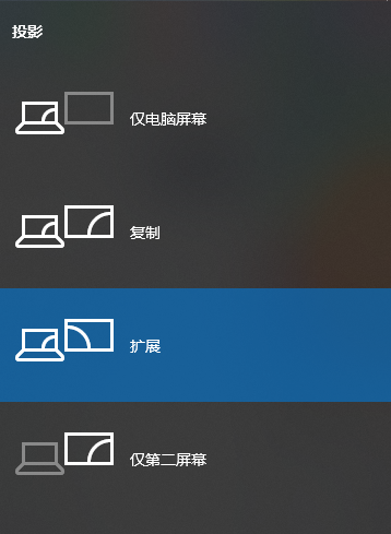 win+p 可以设置拓展屏显示的内容