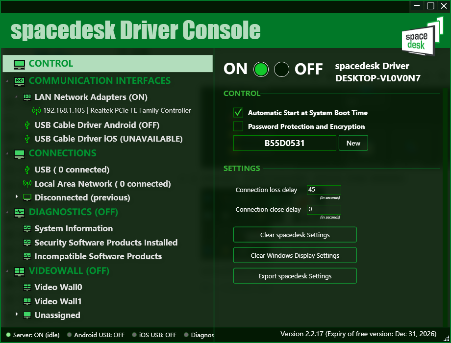 打开 spacedesk 下载好对应的系统的服务端